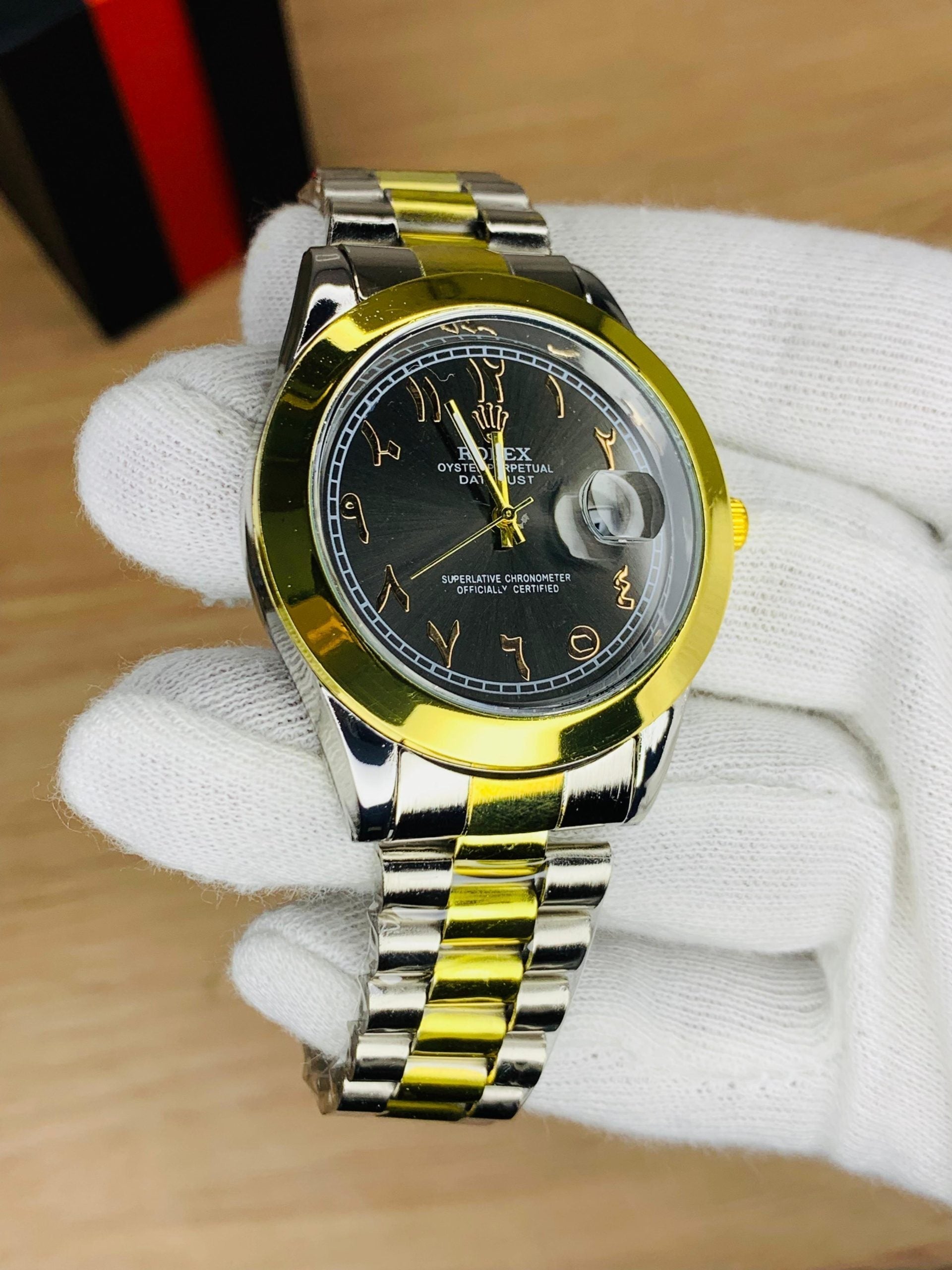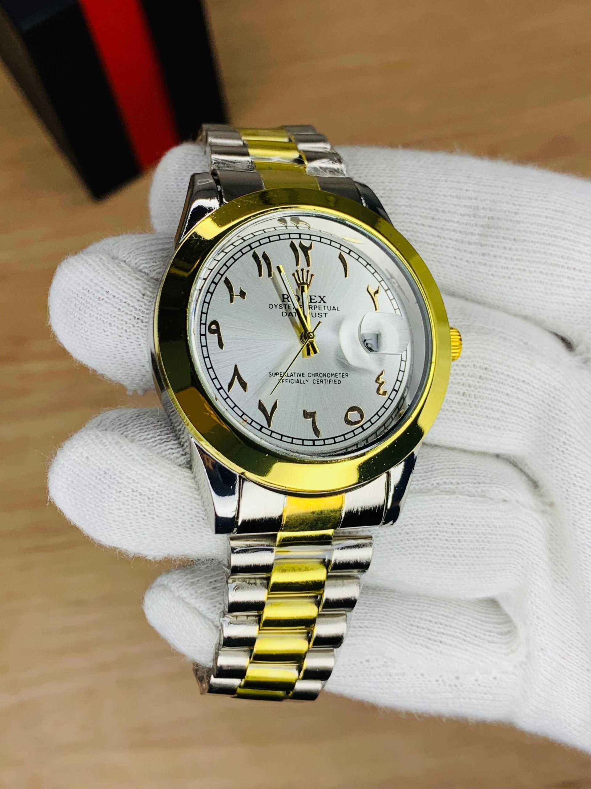 Luxury Two Tone Watch With Date Adjustment - Arabic